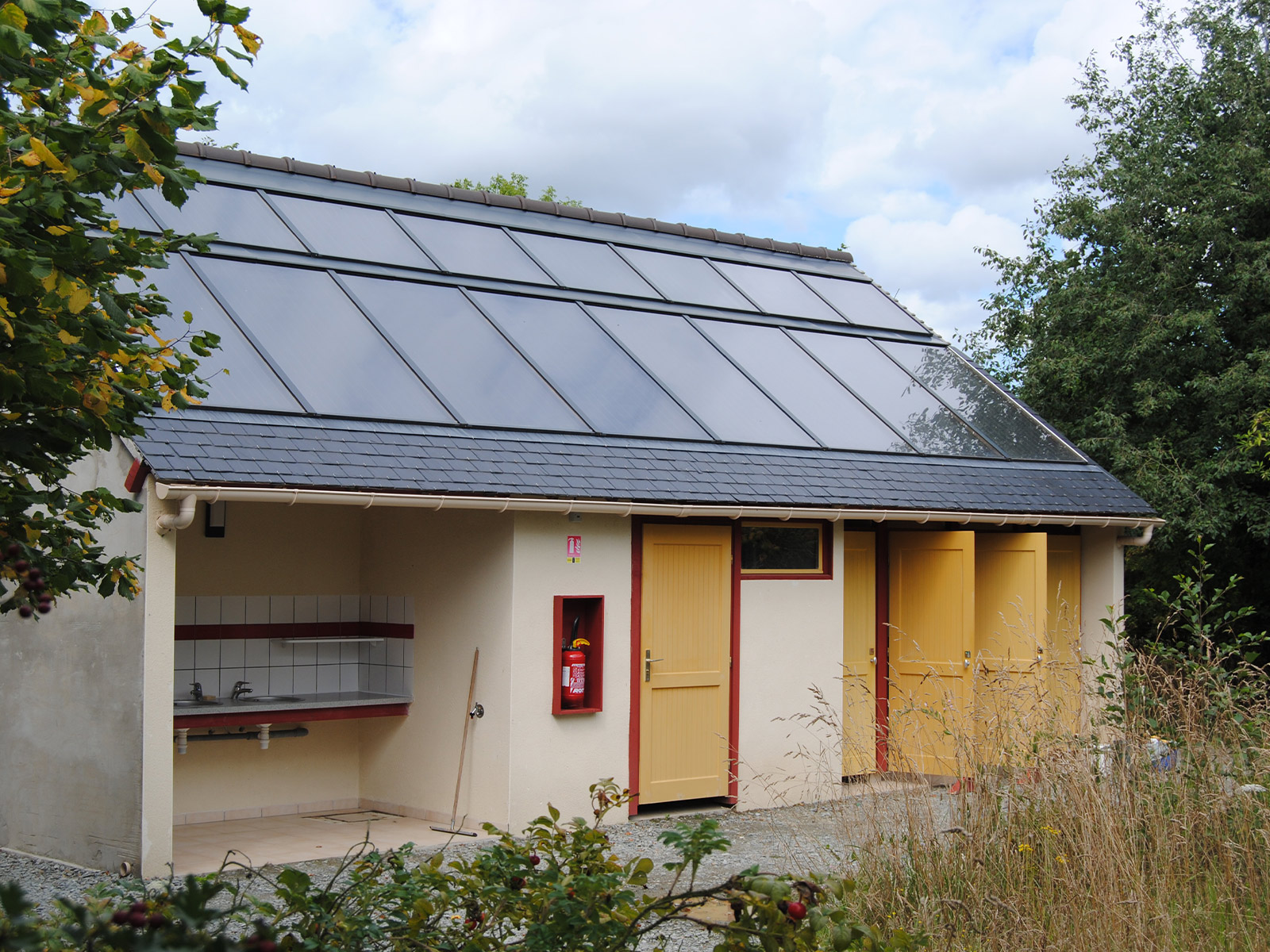 Pallieter possède 2 sanitaires avec eau chaude gratuite dont 1 accessible aux personnes en situation de handicap. Pour notre besoin, 75% d'eau chaude est fourni par les panneaux solaires sur nos sanitaires.